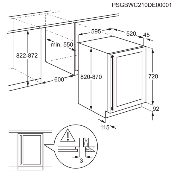 Vestavné rozměry (mm): 822 x 600 x 550