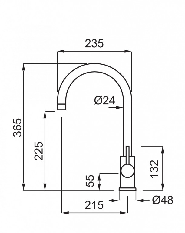 Dřezová páková baterie ELLECI CLOU CROMO Otočná o 360 st. Rozměry: 365x235 mm Průměr: 35 mm Provedení: CROMO