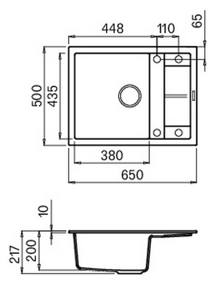 Integrovaná oblast pro příslušenství v odkapávači, vybavená předvrtanými otvory, které vám umožňují instalovat doplňky: excentrické ovládání odpadu, dřezovou baterii s vytahovací sprchou a dávkovač saponátu.