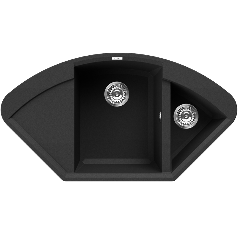 Kuchyňské dřezy se zkosenými hranami. Systém Prisma-clean, který využívá polyedrickou povahu tohoto konkrétního geometrického tvaru, nahrazuje klasický vnitřní zaoblený tvar, za moderní lineární, s prismatickými liniemi, které změkčují vnitřní prostor kuchyňského dřezu a usnadňují jeho čištění při zachování moderního vzhledu a jedinečného estetického výsledku.