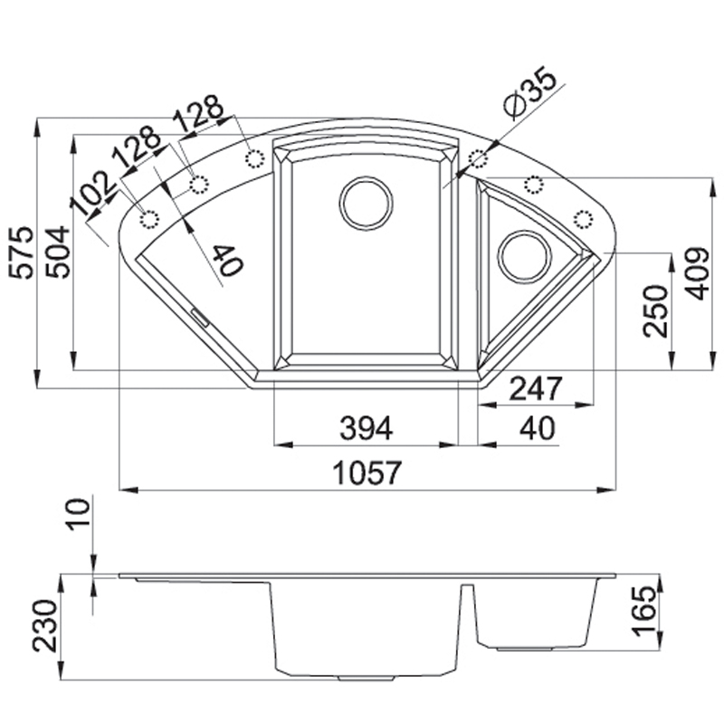 Rohový jednodřez s vaničkou a odkapem  ELLECI EASY CORNER G40