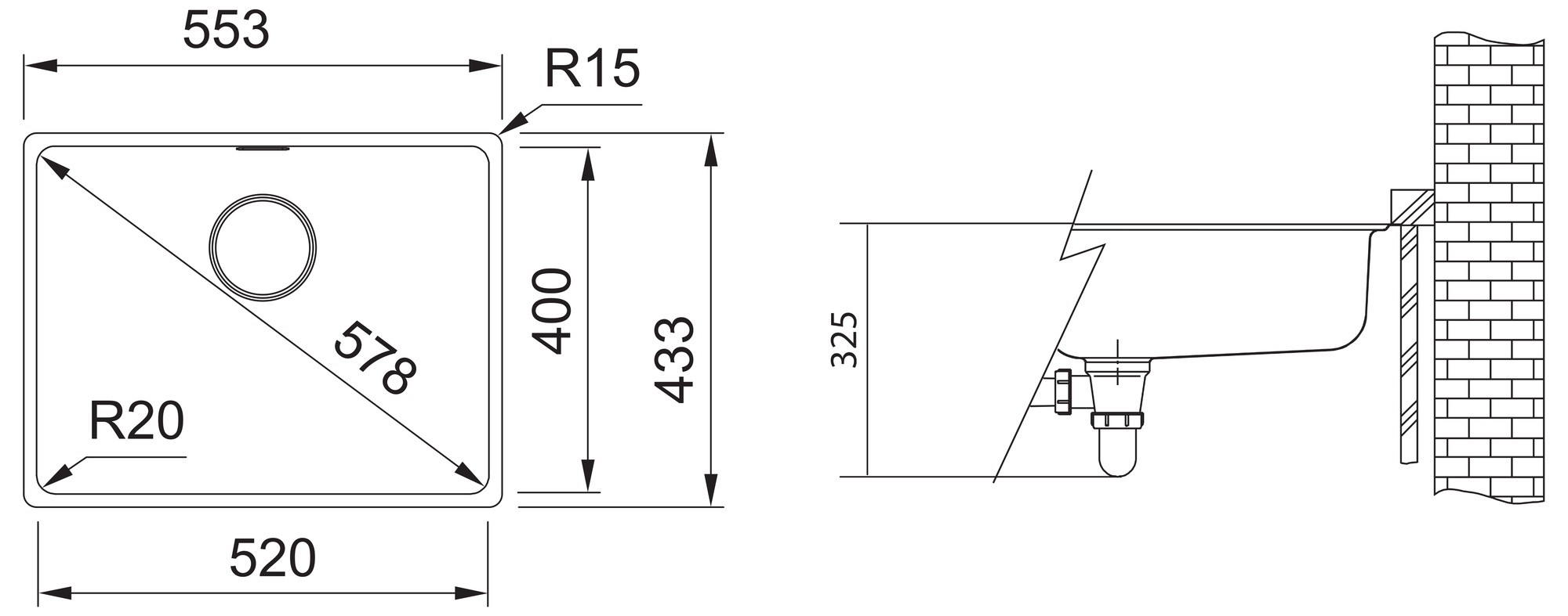 • Rozměr dřezu: 553 x 433 mm