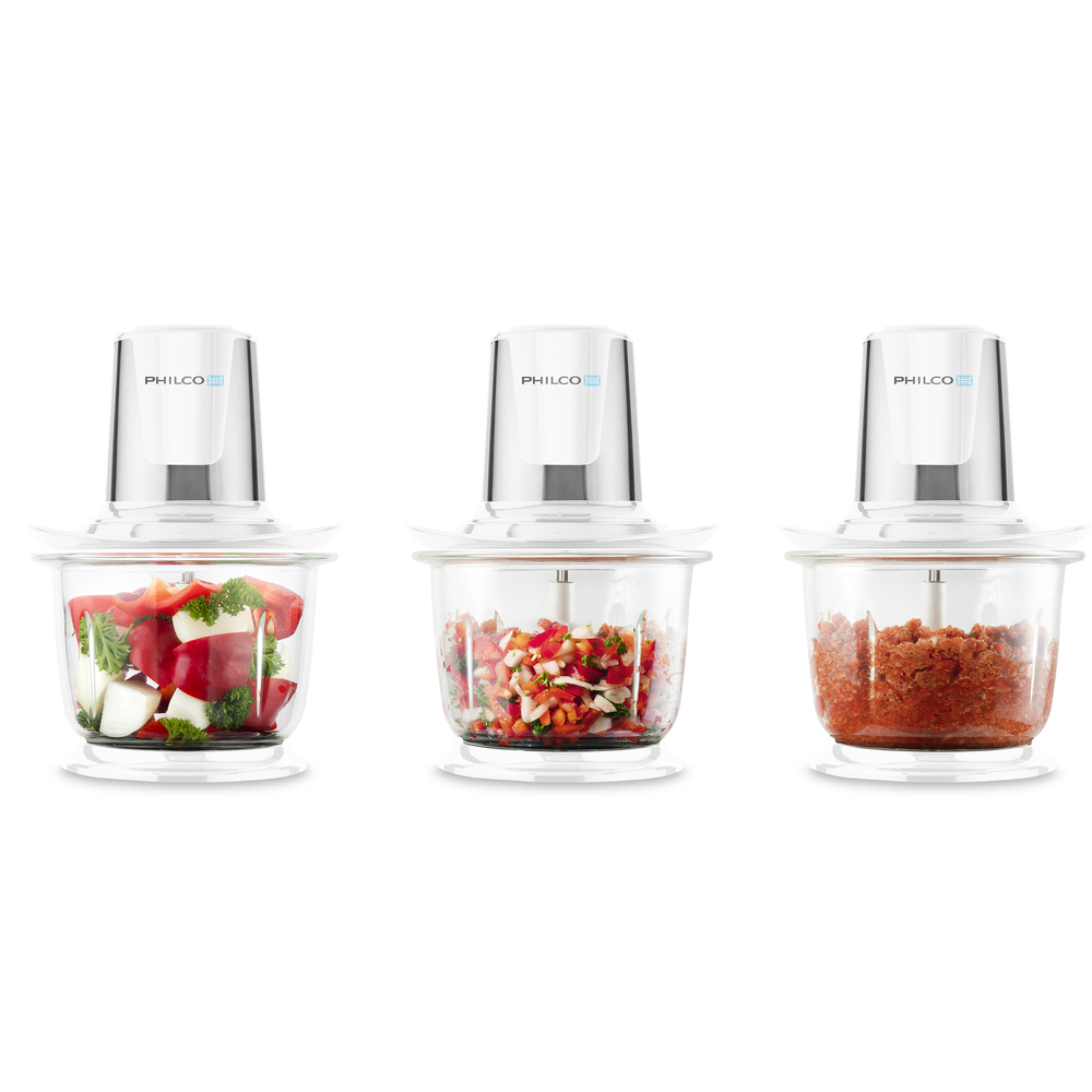 Kuchyňský sekáček s příkonem motoru 400 W, je osazen 4 precizně nabroušenými ocelovými noži, které si hravě poradí s ořechy, masem, sýrem i ledem. Osvědčí se při přípravě ovocných či zeleninových přesnídávek nebo při výrobě domácí paštiky. Tento sekáček má planetovou převodovku, která má delší životnost díky symetrické distribuci zátěže. Oceníte velkou skleněnou nádobu o objemu 1,5 litru a bezpečnou obsluhu jednou rukou.