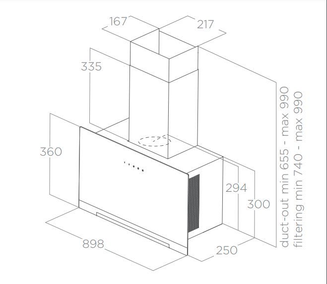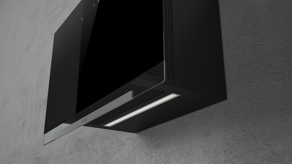 Přední skleněný panel se díky svému plochému tvaru velmi snadno čistí. Aplomb byl navíc navržen tak, aby byla jeho údržba snadná a bezpečná: jakmile je panel otevřený, je možný přímý přístup k vnitřní části digestoře bez jakékoli překážky a tukové filtry lze vyjmout pouhým vysunutím .