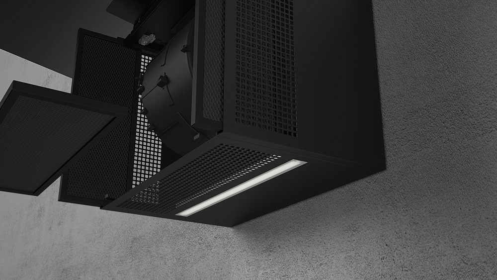 Odsavač par má již v balení černý komín.