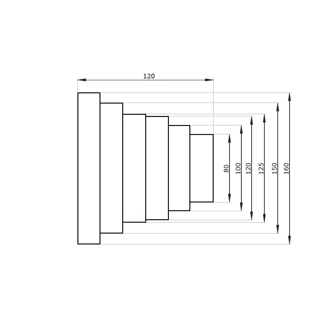 Kruhová redukce vícenásobná Ø 80 - 100 - 120 - 125 - 150 mm Univerzální plastová redukce pro napojení vzduchovodů různých průměrů Ø 80 mm, Ø 100 mm, Ø 120 mm, Ø 125 mm, Ø 150 ...Více informací