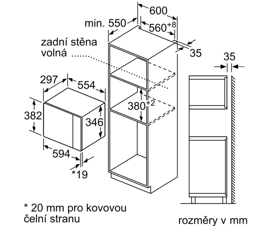 vestavný spotřebič do horní skříňky o šířce 60 cm s hloubkou min. 30 cm, pro vestavbu do vysoké skříňky o šířce 60 cm