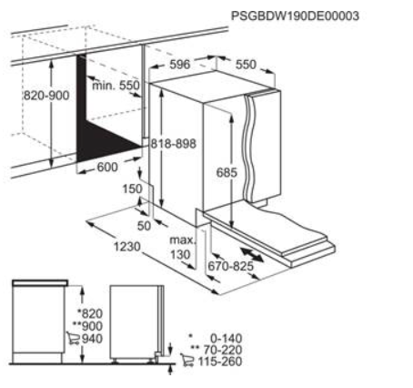 Vestavné rozměry V(min/max)xŠxH (mm): 820/900 x 600 x 570