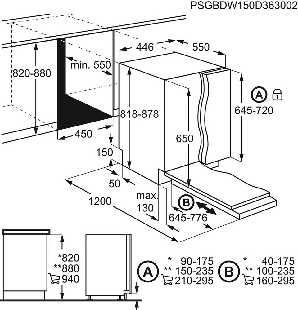 Vestavné rozměry V(min/max)xŠxH (mm): 820/900 x 450 x 550
