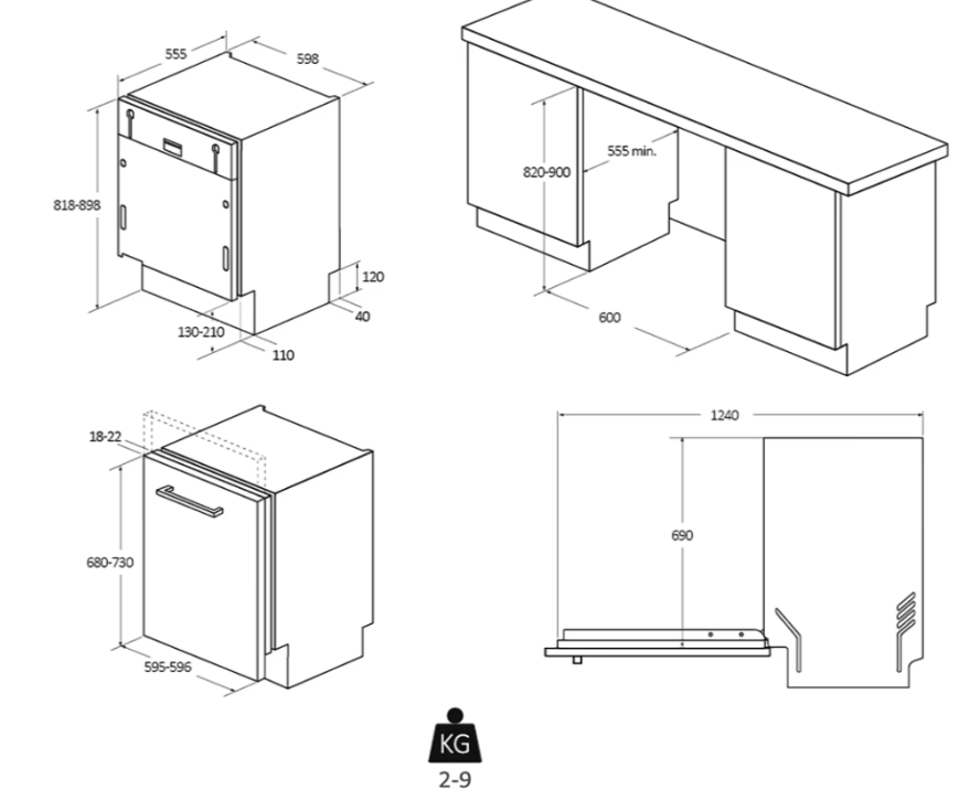Hloubka pro vestavbu cm 55.5