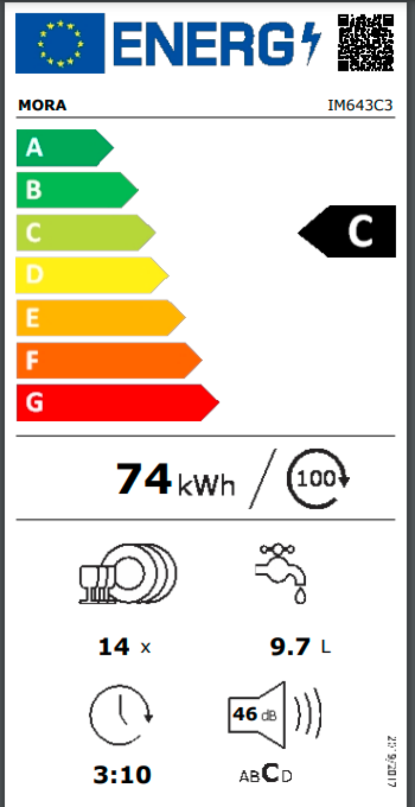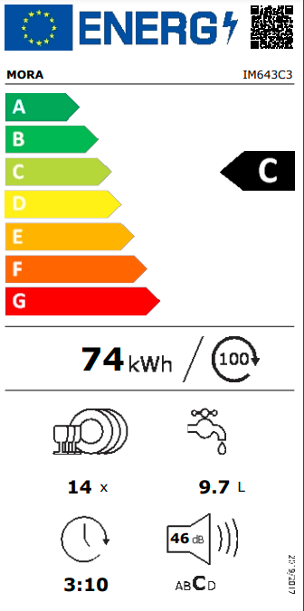 Vestavná plně integrovaná myčka MORA IM 643C3 v úsporné energetické třídě C je vhodná i do větších rodin, jelikož je do ní možné umístit až 14 jídelních sad najednou. Je vybavená dvěma koši a příborovým košíkem. Skrytý ovládací panel je opatřen dotykovým ovládáním s displejem a mnoha praktickými funkcemi, jako je například RychléMytí, které umožňuje zkrátit délku vybraných programů. Zvolíte-li funkci SušeníPlus, po ukončení programu se automaticky pootevřou dvířka, aby tak unikla pára a následný sušicí cyklus byl efektivnější a energeticky úsporný. Energii pomáhá šetřit i možnost připojení přímo na teplou vodu pomocí speciální hadice, odolávající vysokým teplotám. Samozřejmostí je úsporný ECO Program nebo AUTO Program, který sám zvolí optimální parametry mytí. Praktický je i odložený start až o 24 hodin. Myčka má navíc praktický samočistící filtr, a tak automaticky odstraní zbytky mastnoty a jídla ve filtru a zamezí nesprávnému chodu spotřebiče. Má také automatický program pro čištění celého vnitřku myčky včetně ramen a trysek. Se systémem AquaStop se nemusíte obávat nemilého překvapení v podobě vytopení.