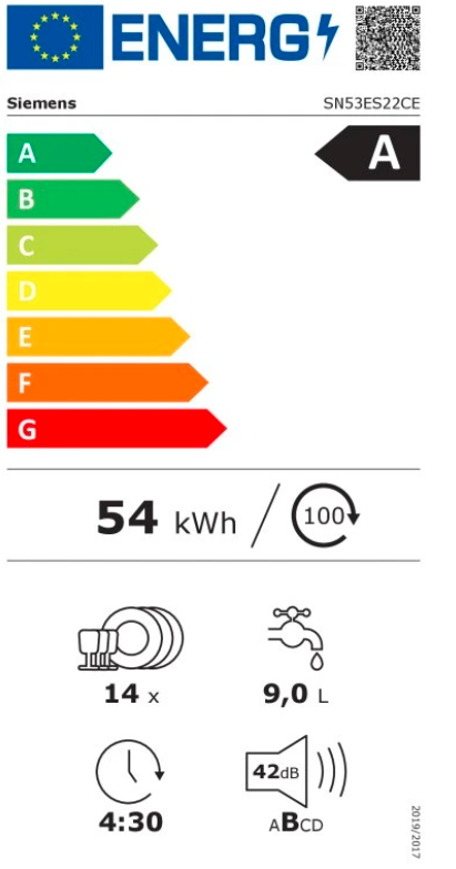 Výkon a spotřeba třída energetické účinnosti:¹ A energie² / voda³: 54 kWh / 9 l kapacita: 14 sad nádobí doba trvání programu:⁴ 4:30 h:min hladina hluku: 42 dB(A) re 1 pW třída ...Více informací