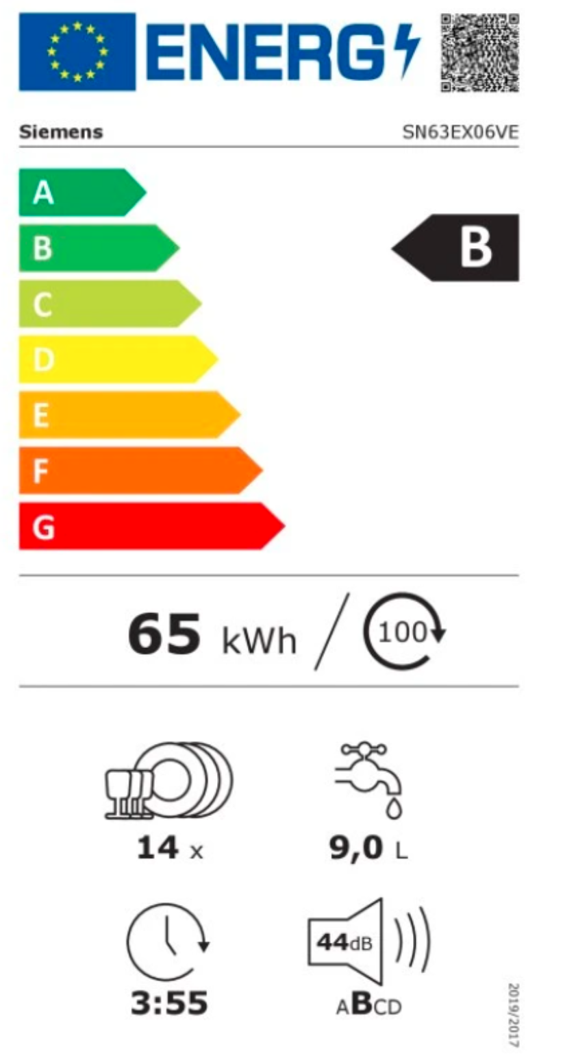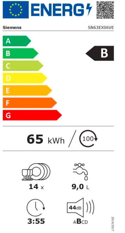 Výkon a spotřeba třída energetické účinnosti:¹ B energie² / voda³: 65 kWh / 9 l kapacita: 14 sad nádobí doba trvání programu:⁴ 3:55 h:min hladina hluku: 44 dB(A) re 1 pW třída ...Více informací