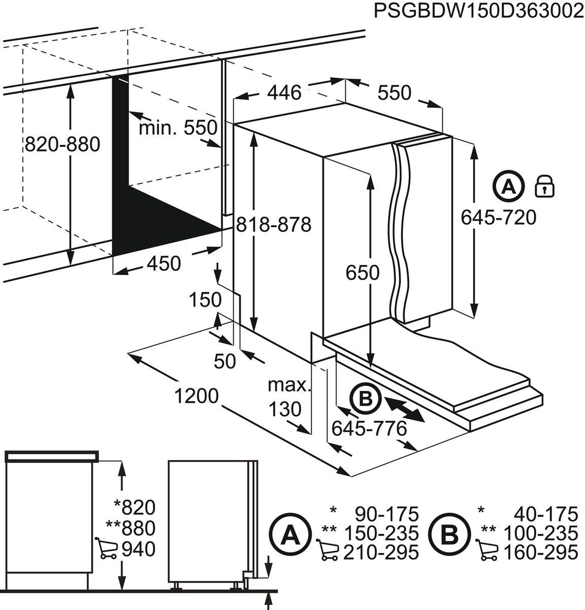 Vestavné rozměry V(min/max)xŠxH (mm): 820/900 x 450 x 550