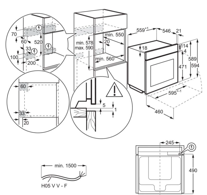 Výška pro vestavbu cm 59
