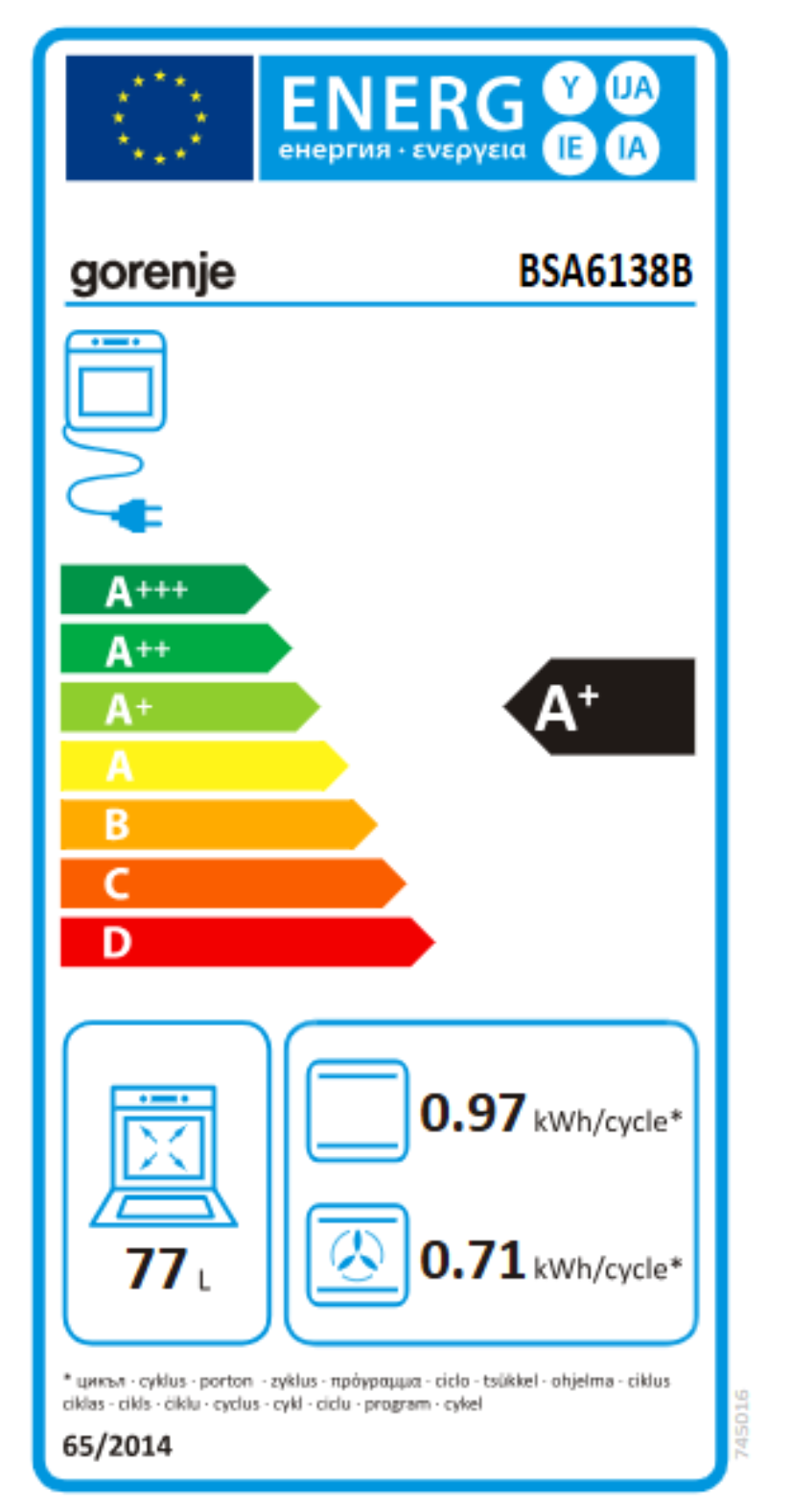 | Objem trouby L | 77 |