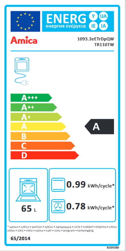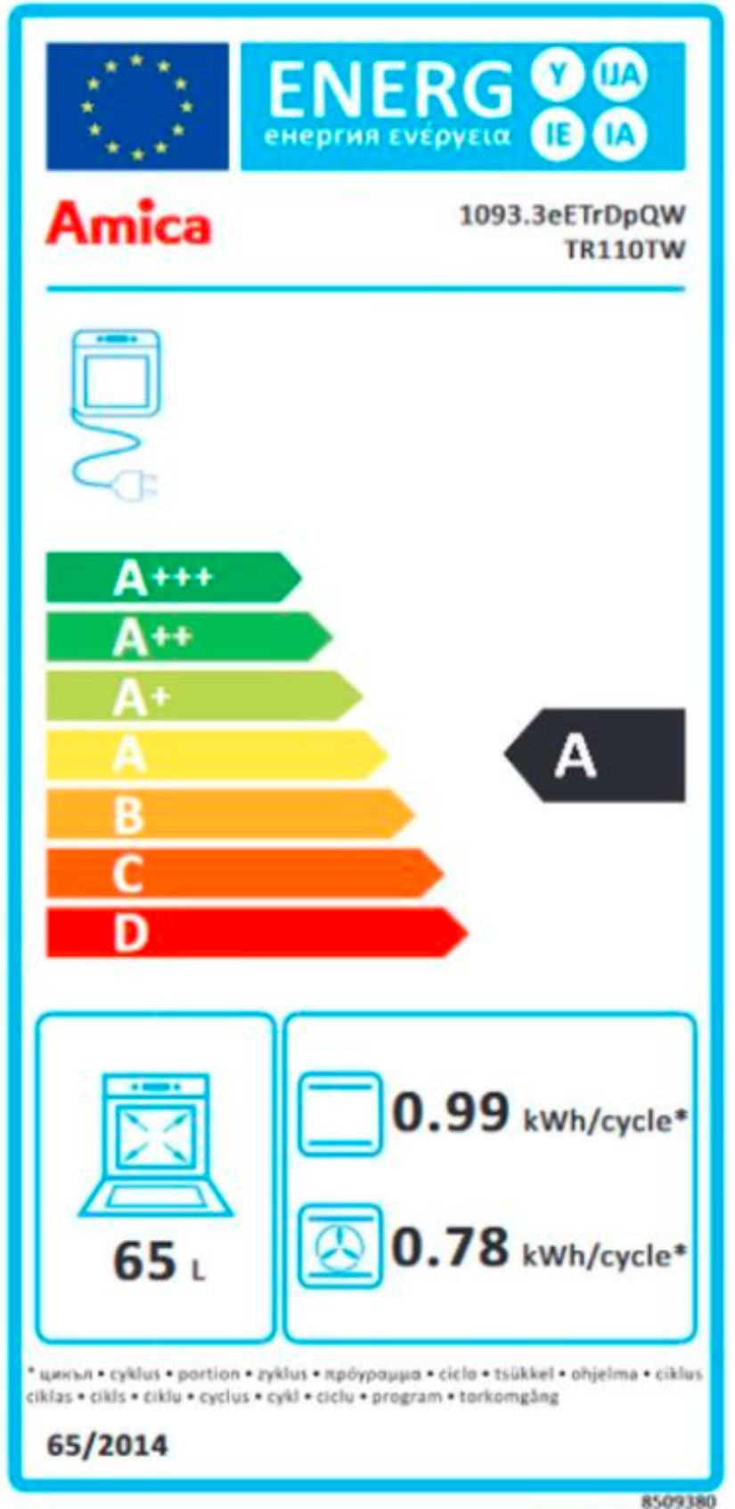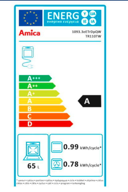 Amica pečuje o životní prostředí a kromě nejnovějších technologií zavádí také pro ekologická řešení. Proto i v souladu s novou normou Evropské Unie mají všechny sporáky a trouby energetickou třídu A. Energetická třída A garantuje nízké účty za elektrickou energii.