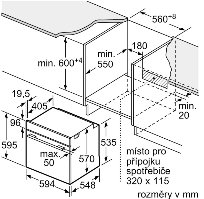 rozměry niky (V x Š x H): 585 mm - 595 mm x 560 mm - 568 mm x 550 mm